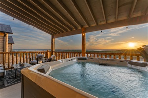-Private patio with plush seating, grill, and private 7 person hot tub